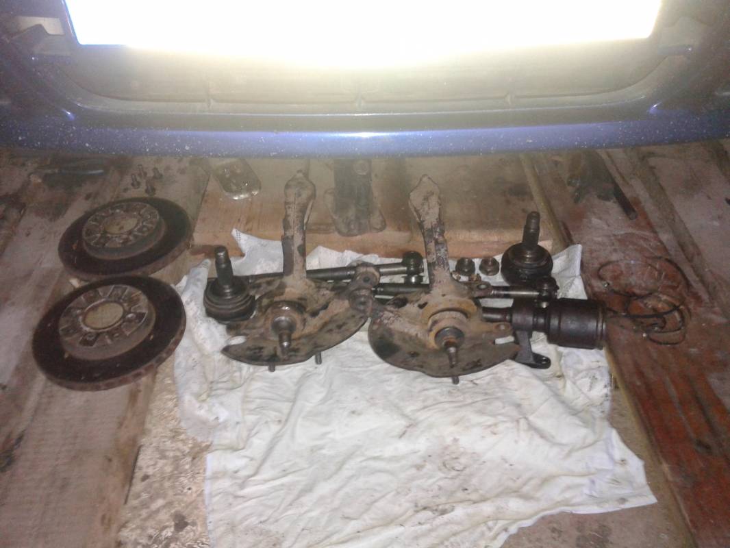 | vakardienas nedarbi tiks mainiti gultni, puteklu gumijas, balsta virzosais sarnirs, karajosais gultnis, viens sainiks, nu ja bus naudas, tad bremzu diski ar uzlikam!!